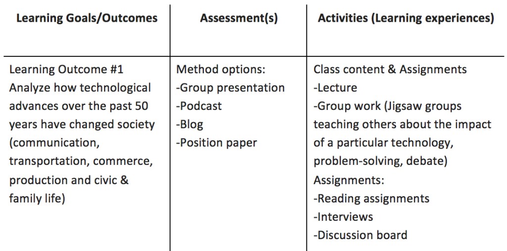 2. Assessments: Next, think about summative assessments (e.g. test, paper, presentation, etc.) and the knowledge and skills that students will be assessed on.