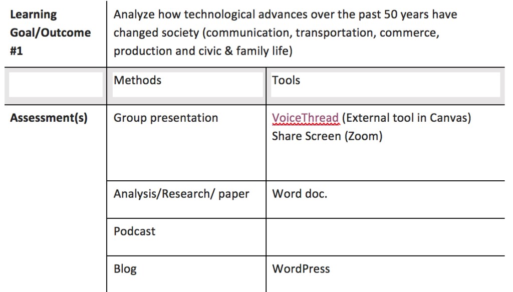 To support students’ attainment of the learning goals, create opportunities for students to receive constructive feedback after each activity. The feedback can be provided through the use of a rubric and through peer or instructor comments.