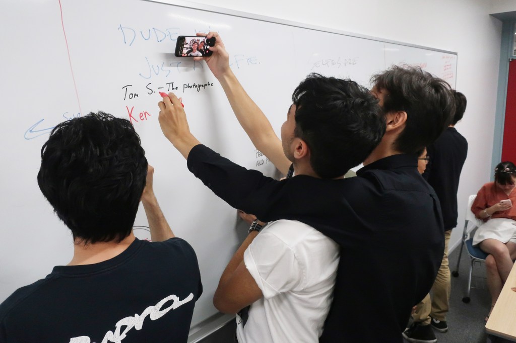 That had the students moving and laughing, and they all started making images of each other doing somersaults and jumping jacks. A few laid on the ground so that their classmates appeared even higher in the images.